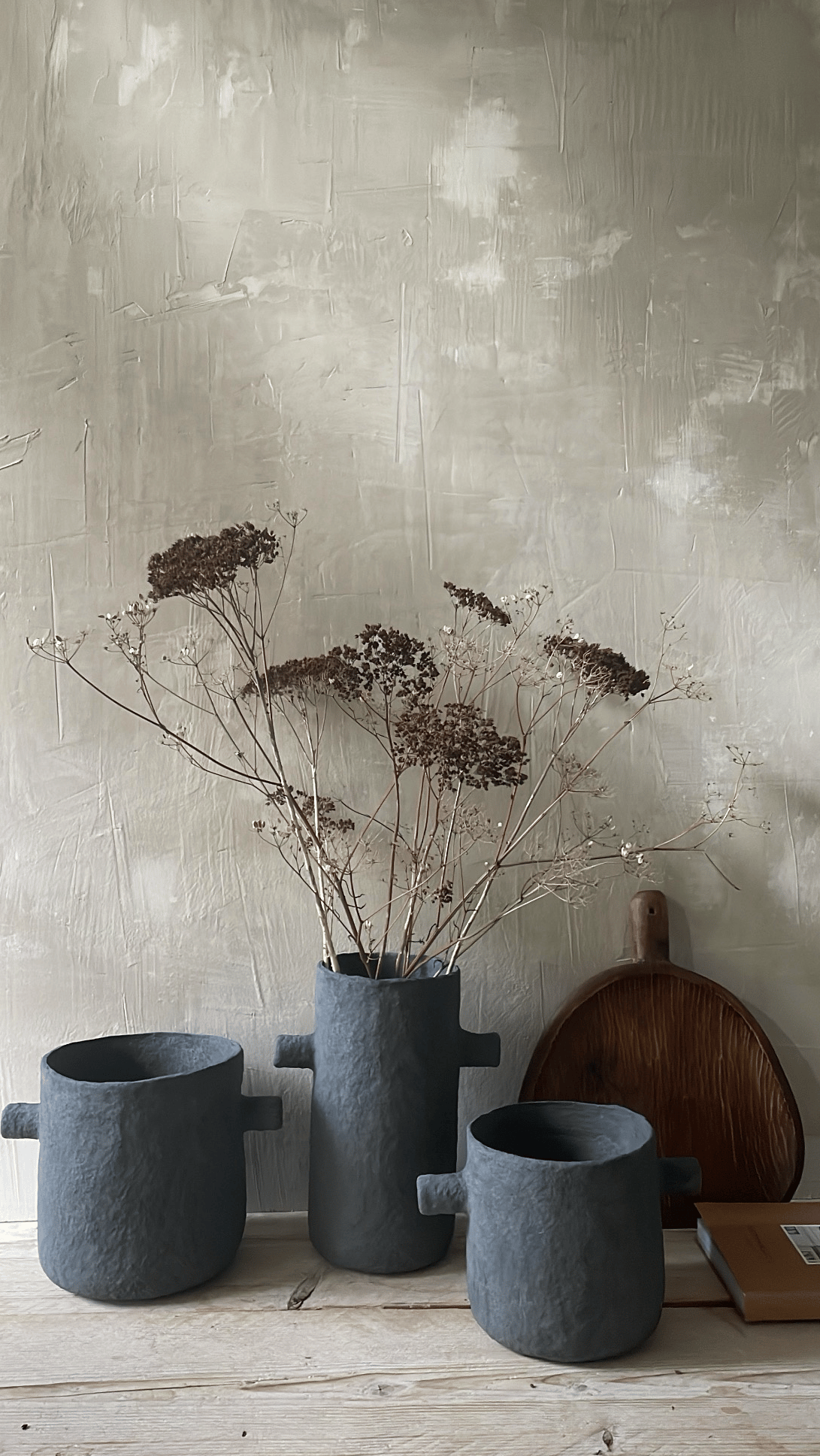 Création en papier mâché - Couleur gris foncé - Ligne horizontale - Des craquelures peuvent apparaître et sont normales .