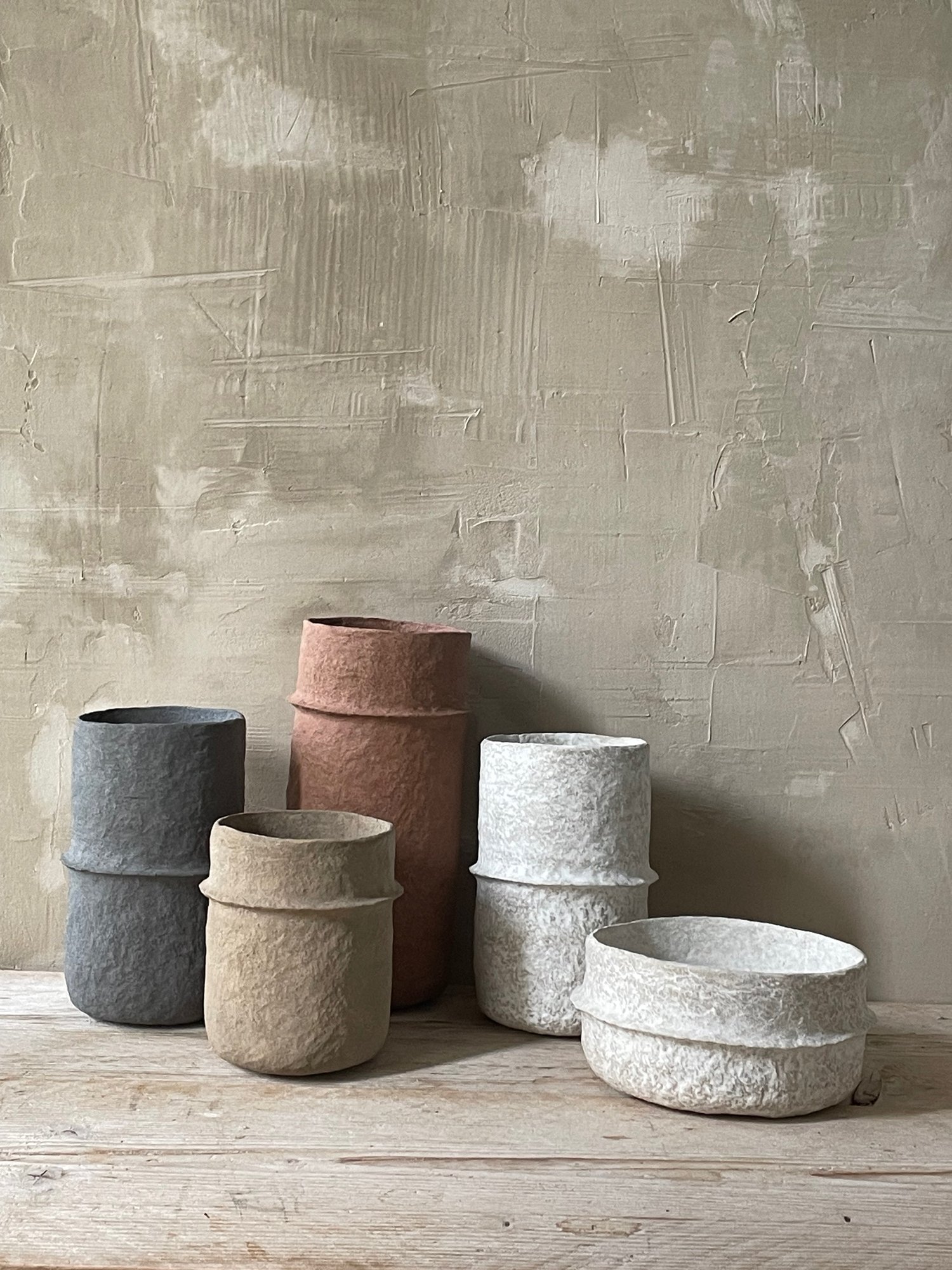 Papier recyclé, modélé à la main sans ajout de produits nocifs ( ni résine, ni colle, ni vernis )